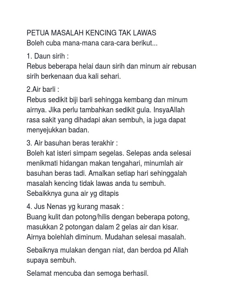 Ayoh Mea Petua Hilangkan Kencing Tak Lawas Selamat Facebook